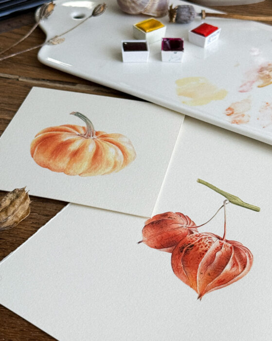 Venez apprendre les bases de l’aquarelle botanique avec les sujets les plus séduisant de cette belle saison : la citrouille et les lanternes chinoises.